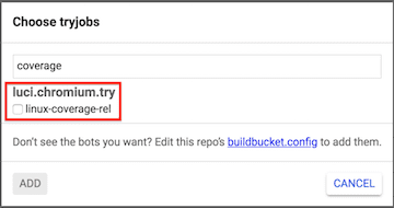 כדי להציג את כיסוי הקוד ל-Chromium CL, מפעילים את ה-robots של כיסוי הקוד linux-coverage-rel: