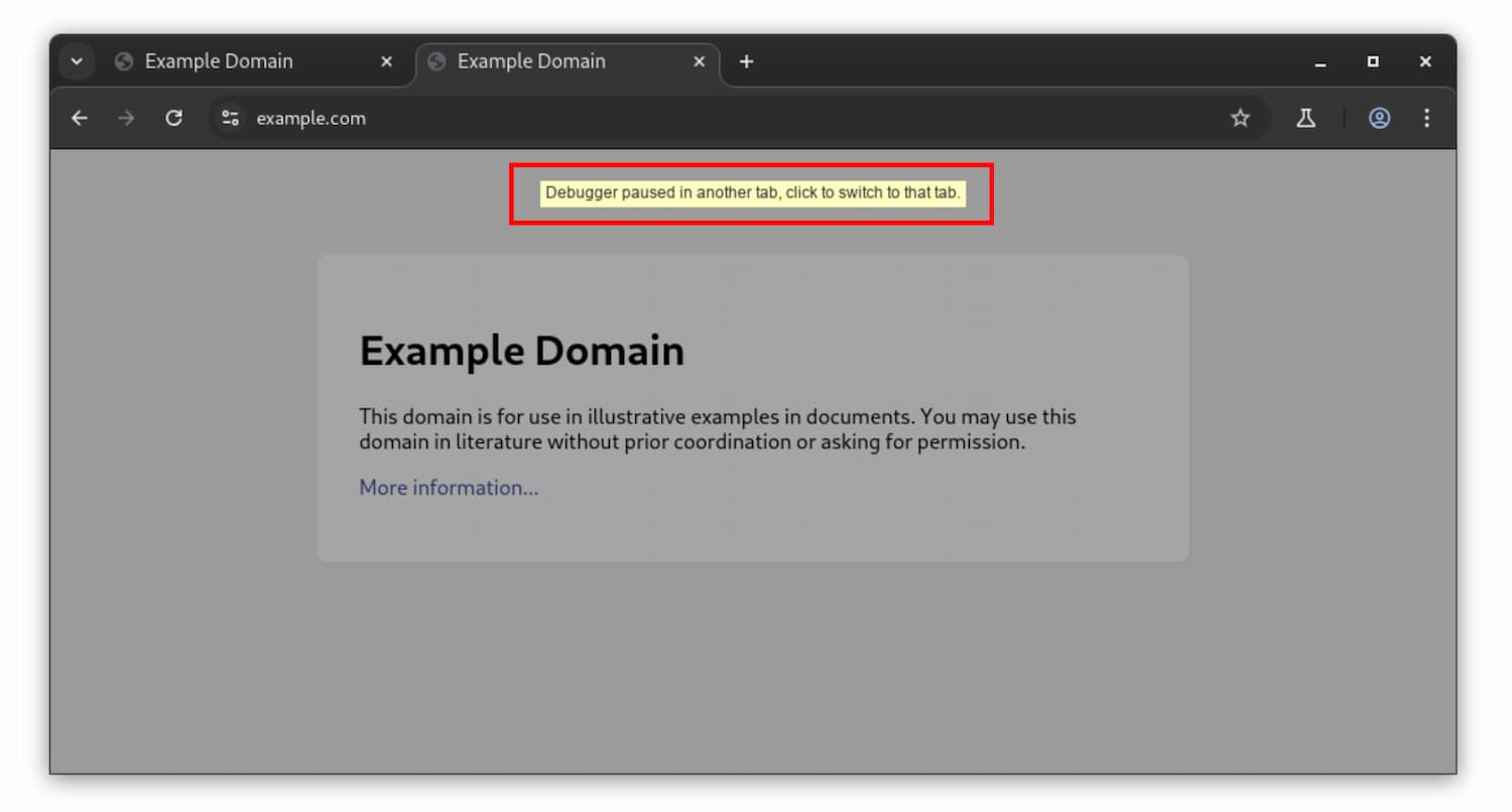 Duraklatma noktası hata ayıklama. Hata ayıklayıcıyı bir sekmede duraklatırsanız bu, süreci paylaşan diğer kullanıcıları etkileyebilir. "Hata ayıklayıcı başka bir sekmede duraklatıldı. Söz konusu sekmeye geçmek için tıklayın." uyarısını görürsünüz. Performans analizi. Toplu anlık görüntüler ve performans kayıtları birden fazla sekmedeki verileri yakalayabilir. Bu da sonuçların yorumlanmasını zorlaştırır.