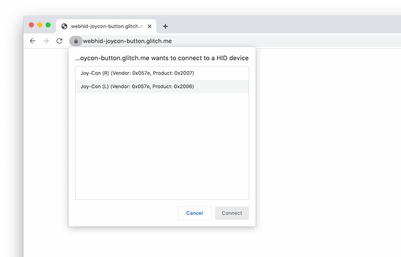 productId: 0x2006 // Joy-Con Left