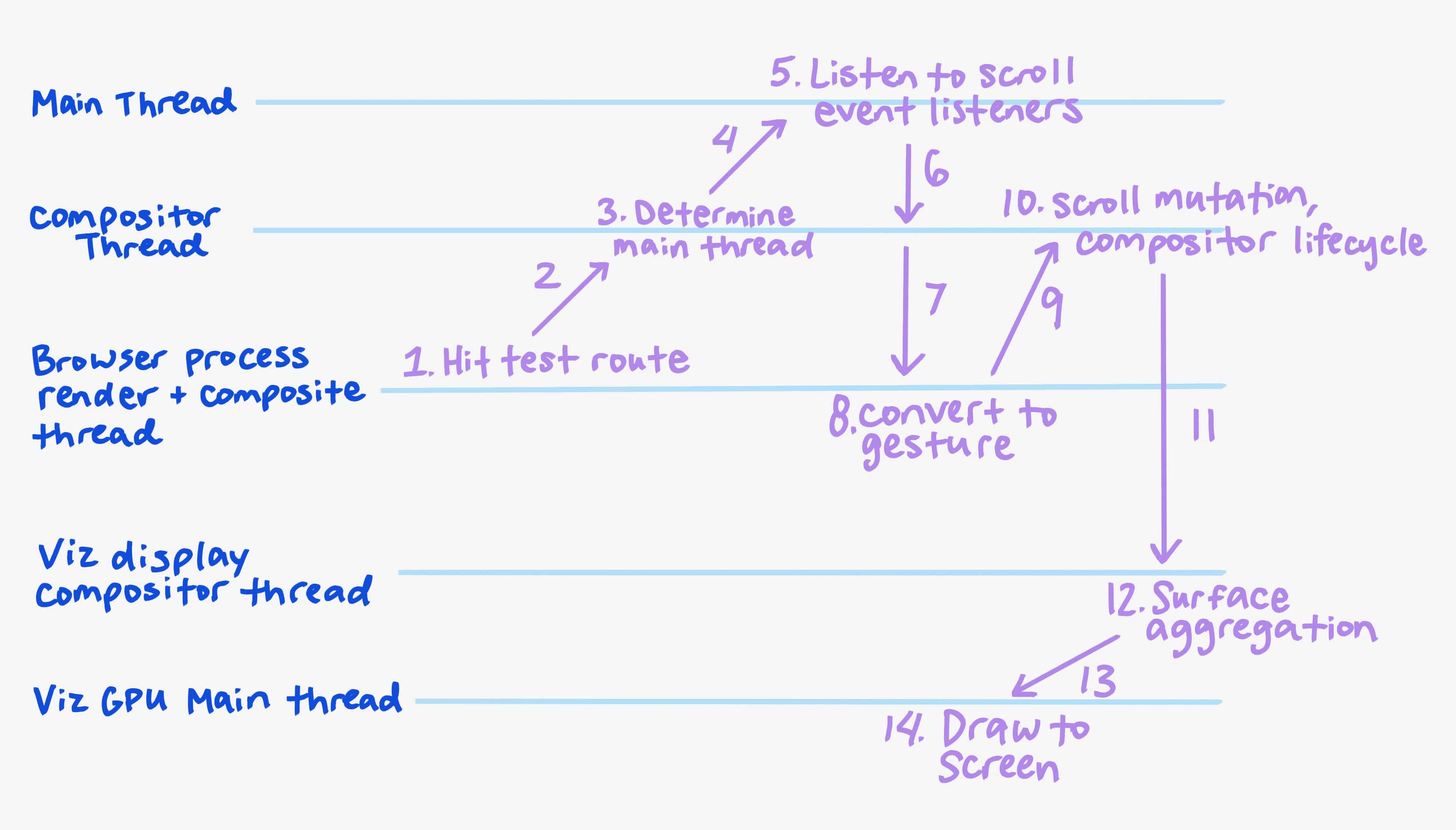 scrollइवेंट (यहां नहीं दिखाया गया है) ट्रिगर करने के लिए भी कहता है. - Viz को एक कंपोजिटर फ़्रेम भेजा जाता है.