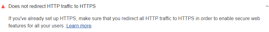 Lighthouse kennzeichnet Seiten, die nicht zu HTTPS weitergeleitet werden: