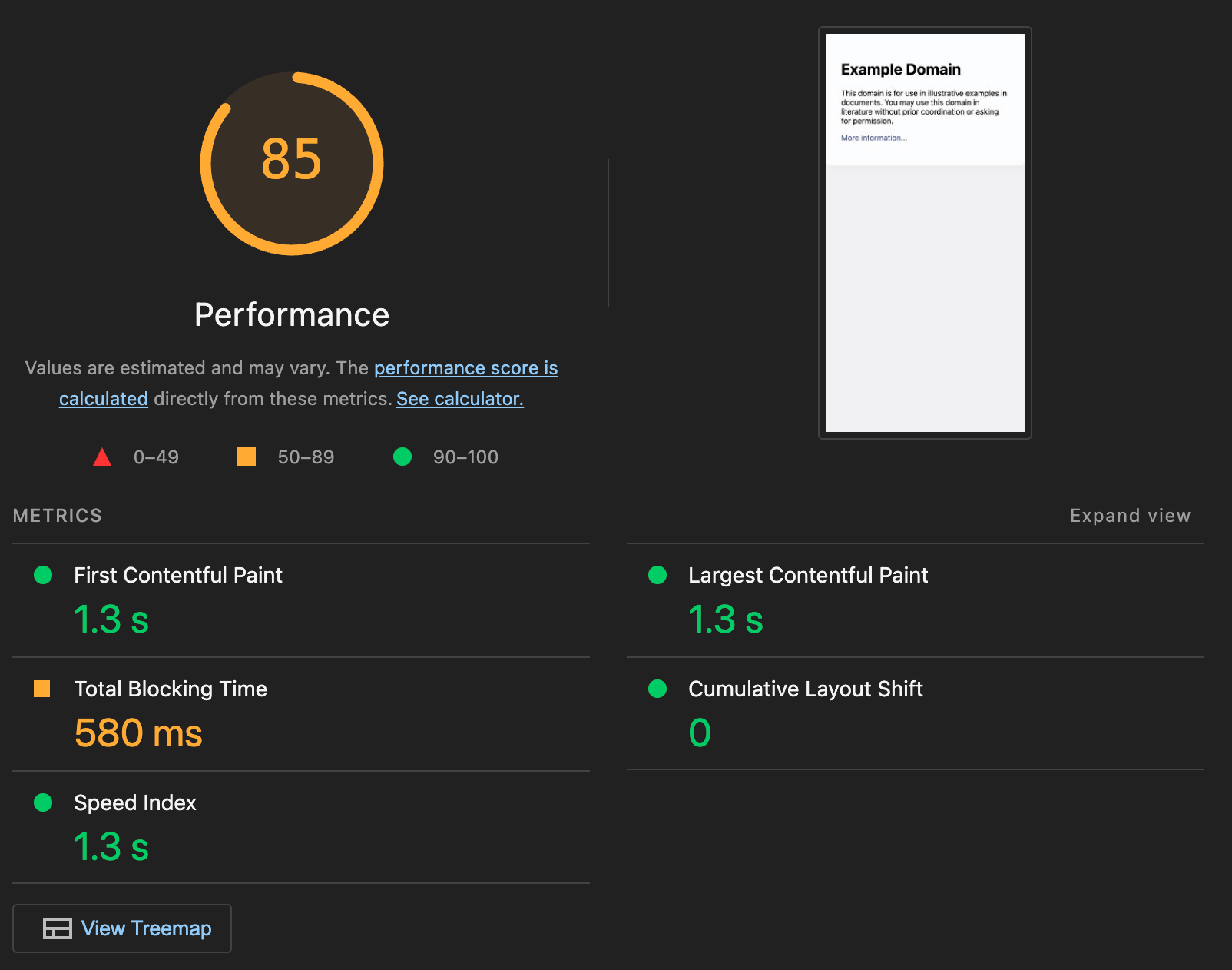 Para saber mais sobre os pacotes JavaScript em uma página, clique em View Treemap. Isso abre os pacotes da página no mapa de árvore do Lighthouse.
